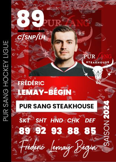 Après avoir joué en Europe pour une équipe française, Frédéric a su démontrer tout son talent et sa finesse de jeu. Joueur extrêmement habile, il se distingue par sa capacité à se démarquer et à créer des occasions de but. Son sens aigu du jeu, allié à une technique raffinée, fait de lui un atout précieux sur la glace. Attiré par la visibilité internationale qu’offre la PSHL, Frédéric n’a pas hésité une seule seconde à s’y engager. Il est capable de déjouer ses adversaires avec une aisance déconcertante, que ce soit par ses passes précises, ses dribbles intelligents ou ses actions décisives.