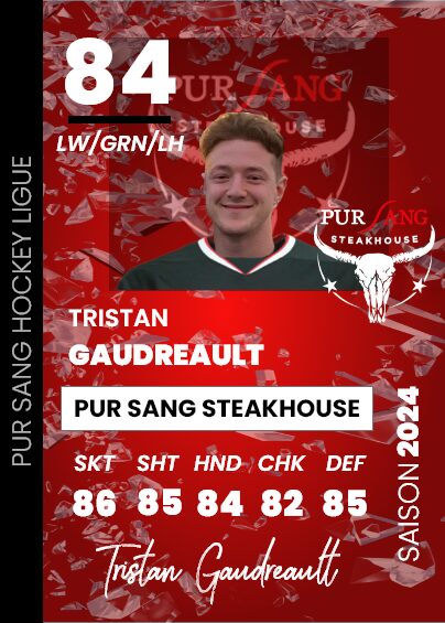 Tristan est un attaquant reconnu pour sa rapidité impressionnante sur la glace. Il n’hésite jamais à assumer des rôles variés en attaque lorsque nécessaire, apportant une polyvalence et une énergie précieuses à l’équipe. Son habileté à intervenir rapidement dans diverses situations le rend indispensable pour maintenir un jeu fluide et dynamique.